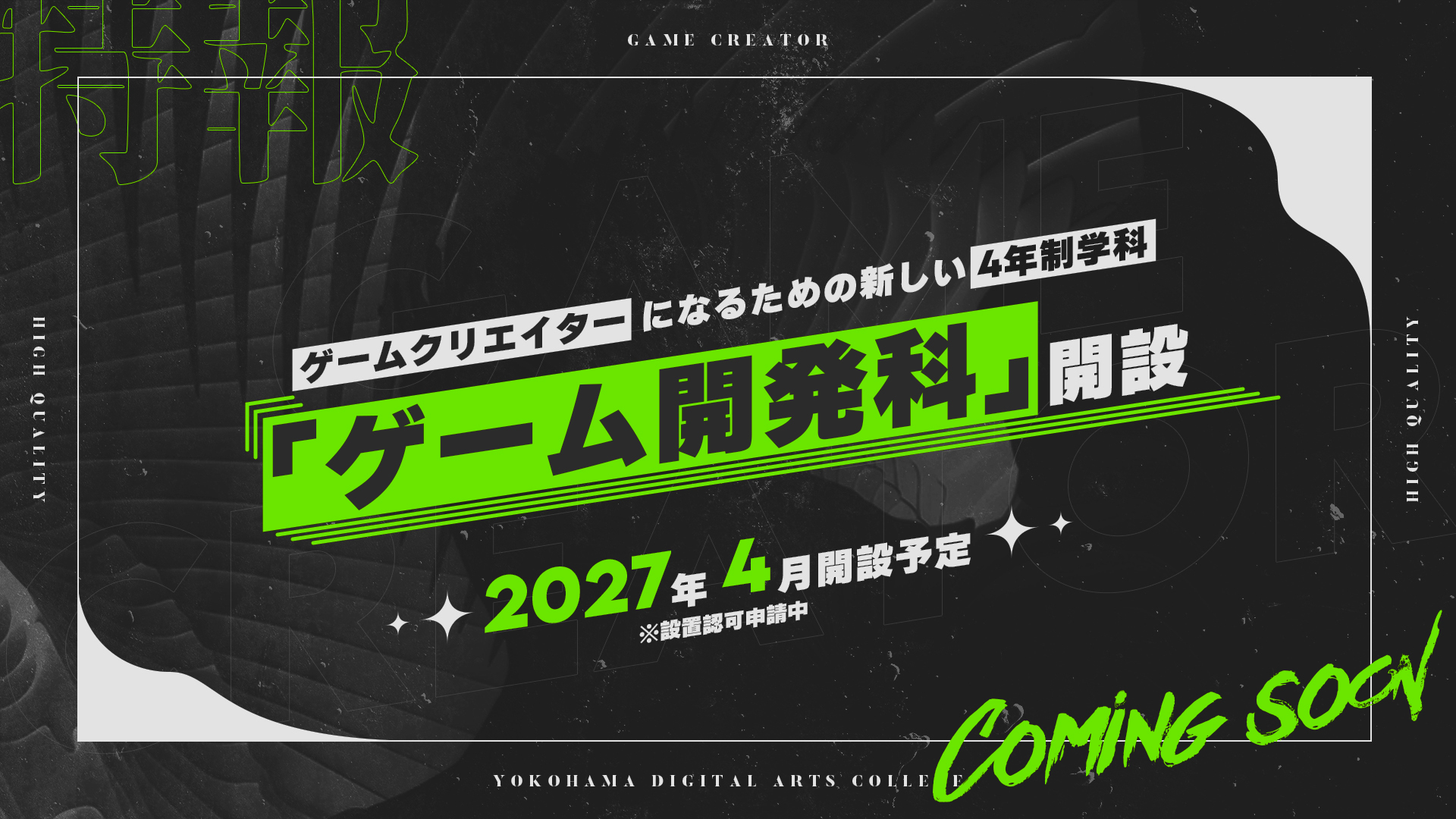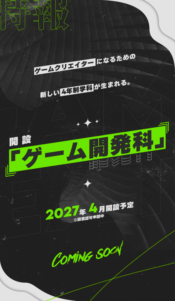 【お知らせ】2027年4月、始動。ゲーム開発科(4年制)開設(認可申請中)